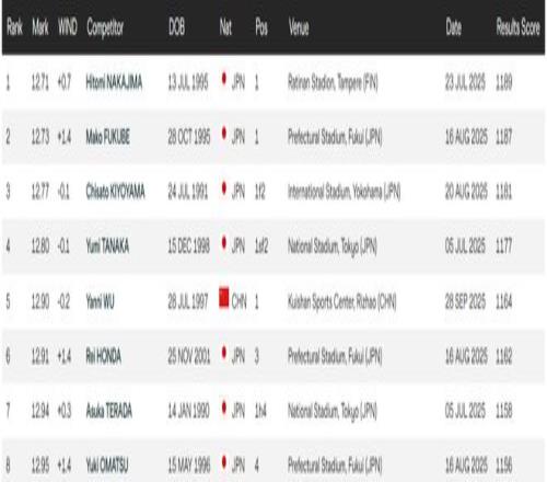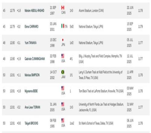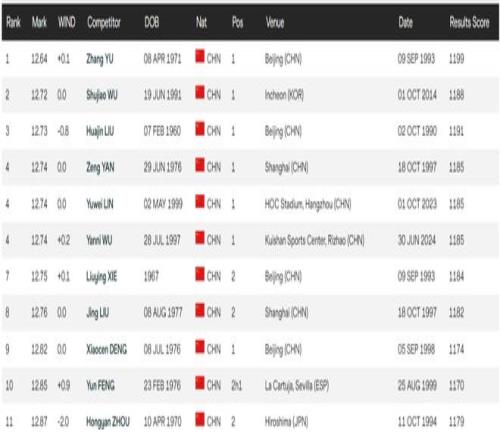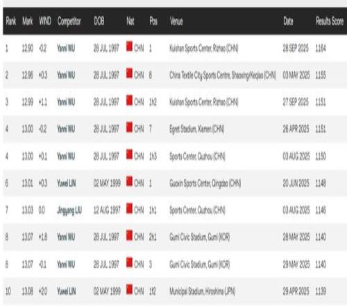 放到亞洲的話,12秒81的成績依然落后于幾位日本選手,在今年排名亞洲第五,不過差距很小。