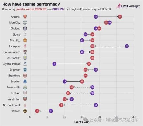 而阿森納比上賽季同期多7分,是進(jìn)步第二大的球隊,第一是利物浦苦主水晶宮,比上賽季同期多拿10分。