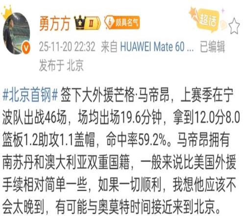 休賽期的時(shí)候,北京首鋼很早就確定了杰曼和斯佩爾曼,最后又續(xù)約了奧莫特,就在球迷期待超級(jí)外援的時(shí)候,結(jié)果卻是馬帝昂。