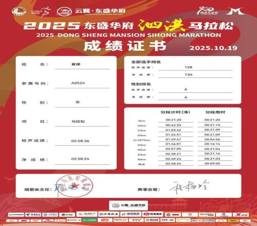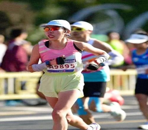 兩年后,她在泗洪馬拉松上成功破三,以2:58:24完賽。