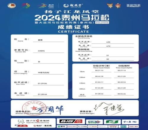 夏 娜在泰州馬 拉松半馬順利跑進(jìn)130