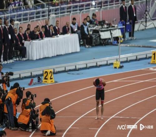 這是蘇炳添職業(yè)生涯中最后一場比賽。賽后,蘇炳添向觀眾告別,他說:“能夠堅(jiān)持到今天,在我的家鄉(xiāng)跟大家說一句再見,我感到非常榮幸。今天看整個(gè)體育場都是高朋滿座的,謝謝你們的到來!”