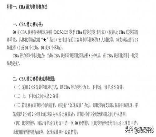 北京時(shí)間12月21日,涉及到新賽季CBA出新規(guī),各隊(duì)都將和其他19個(gè)對手在常規(guī)賽結(jié)束后8分鐘額外進(jìn)行1場潛力賽。