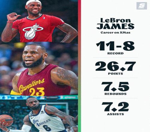 北京時(shí)間明日,一年一度的NBA圣誕大戰(zhàn)即將打響。今日,美媒曬出了湖人球星勒布朗-詹姆斯的圣誕大戰(zhàn)數(shù)據(jù)。