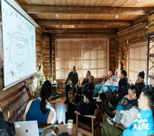 圖為彭超在禾木舉辦的一場雪崩安全教育培訓(xùn)活動