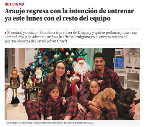 《世界體育報(bào)》指出,巴薩的圣誕假期結(jié)束,本周一,巴薩全隊(duì)回歸訓(xùn)練。阿勞霍也將回到約翰-克魯伊夫球場,在6000名球迷面前參加訓(xùn)練。