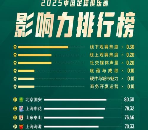 2025年馬上就要過去,現(xiàn)在正是對(duì)國(guó)內(nèi)聯(lián)賽做出總結(jié)的一個(gè)好時(shí)候。近日,一份關(guān)于俱樂部影響力的綜合評(píng)估結(jié)果在網(wǎng)上流傳開來,正好卡在聯(lián)賽總結(jié)與新周期啟動(dòng)之間,看起來像是一份成績(jī)單,也像是一次對(duì)過去一年各俱樂部業(yè)績(jī)的集中盤點(diǎn)。