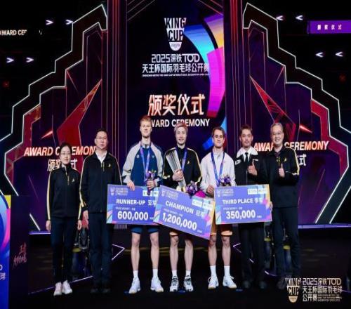 頒獎典禮上,賽事發(fā)起人林丹為獲獎選手頒獎,冠軍石宇奇斬獲120萬元獎金,亞軍安東森獲60萬元,季軍拉尼爾與殿軍喬納坦分別收獲35萬元、25萬元獎金。當(dāng)林丹將冠軍獎杯交到石宇奇手中,全場燈光聚焦,定格下2025天王杯最榮耀的瞬間。