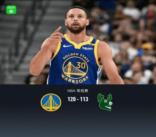 金州勇士斯蒂芬-庫里31分6板7助,梅爾頓22分2板;密爾沃基雄鹿字母哥34分10板5助,萊恩-羅林斯16分7板4助。