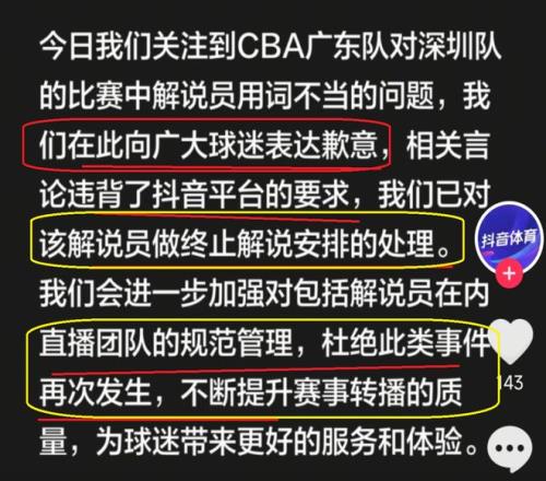 與此同時,抖音平臺還表示接下來會對所有的解說員進行規(guī)范管理,從而避免此類事件再次發(fā)生!以便給球迷帶來更好的觀賽感受!