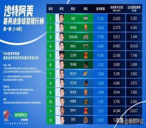 CBA官方:徐昕領(lǐng)銜最具進(jìn)步球員排名榜單多項(xiàng)數(shù)據(jù)創(chuàng)生涯新高