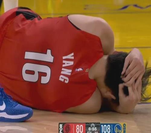 楊瀚森打NBA老是頭部遭受重擊,打勇士倒地爭搶地板球過程中后腦勺撞到理查德膝蓋,好在沒有大礙,返回更衣室檢查一會兒就重返賽場。