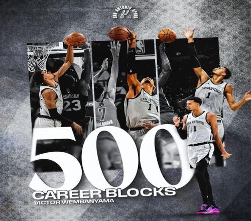 值得一提的是,文班亞馬生涯蓋帽數(shù)已經(jīng)達到500,NBA歷史第二年輕,用時143場歷史第四快。