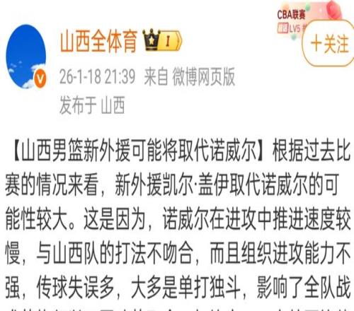 然而隨后一段時(shí)間諾威爾的表現(xiàn)出現(xiàn)了下滑,山西男籃方面也是尋找了替代者,就是凱爾蓋伊,根據(jù)媒體報(bào)道,雙方已經(jīng)完成了簽約。