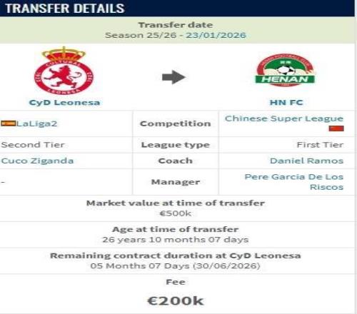 德轉(zhuǎn):西乙萊昂文體邊鋒姆布拉加盟河南隊(duì)的轉(zhuǎn)會費(fèi)為20萬歐