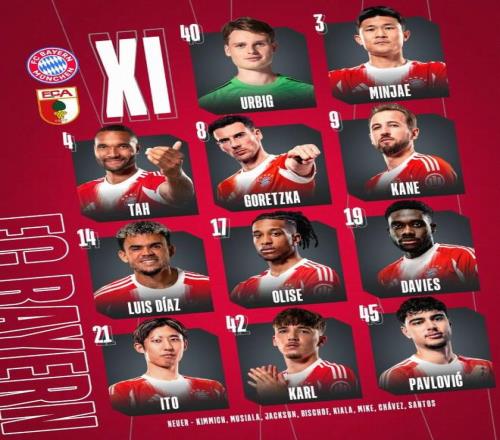 北京時(shí)間1月24日22:30,德甲第19輪,拜仁主場(chǎng)對(duì)陣奧格斯堡。賽前首發(fā)公布。